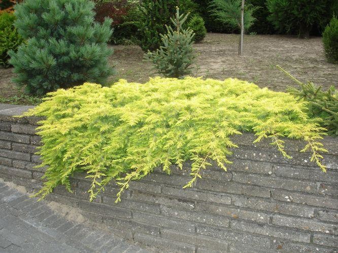 Ihličnatý strom, vždyzelený, huňatý, poliehavý pôdny kryt, má mäkké zlaté lístie, najjasnejšie na jar a nakoniec sa rozšíri na šírku 2,5 m a výšku 15 cm. Má rad slnko. Toleruje chudobné pôdy, najmä piesočnaté, ale neznáša nadmernú vlhkosť pôdy.